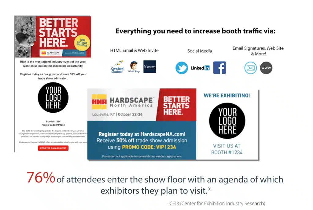 The program is a free and convenient exhibitor resource designed to give you everything you need to promote your presence at Hardscape North America 2025 to all of your customers and prospects, while inviting them to register as your guest with exclusive discounts.